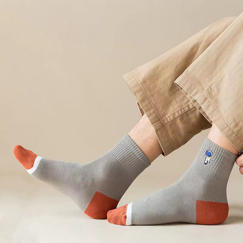 ✨Combo 5 đôi Vớ tất nam cổ trung màu trung tính thêu phi hành gia thông hơi