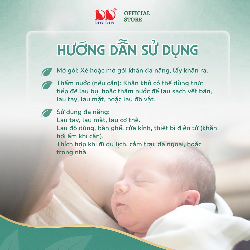 Khăn vải khô đa năng được làm từ chất liệu vải không dệt, có đặc tính dai, mềm, mịn, độ co giãn cao. Sản phẩm có thể sử dụng thay thế hoàn toàn khăn ướt,