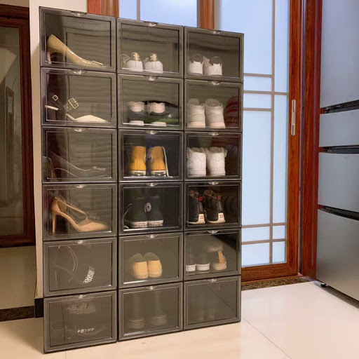 Hộp đựng giày nhựa cứng cao cấp Nắp Trong Suốt Tích Hợp Nam Châm Hít