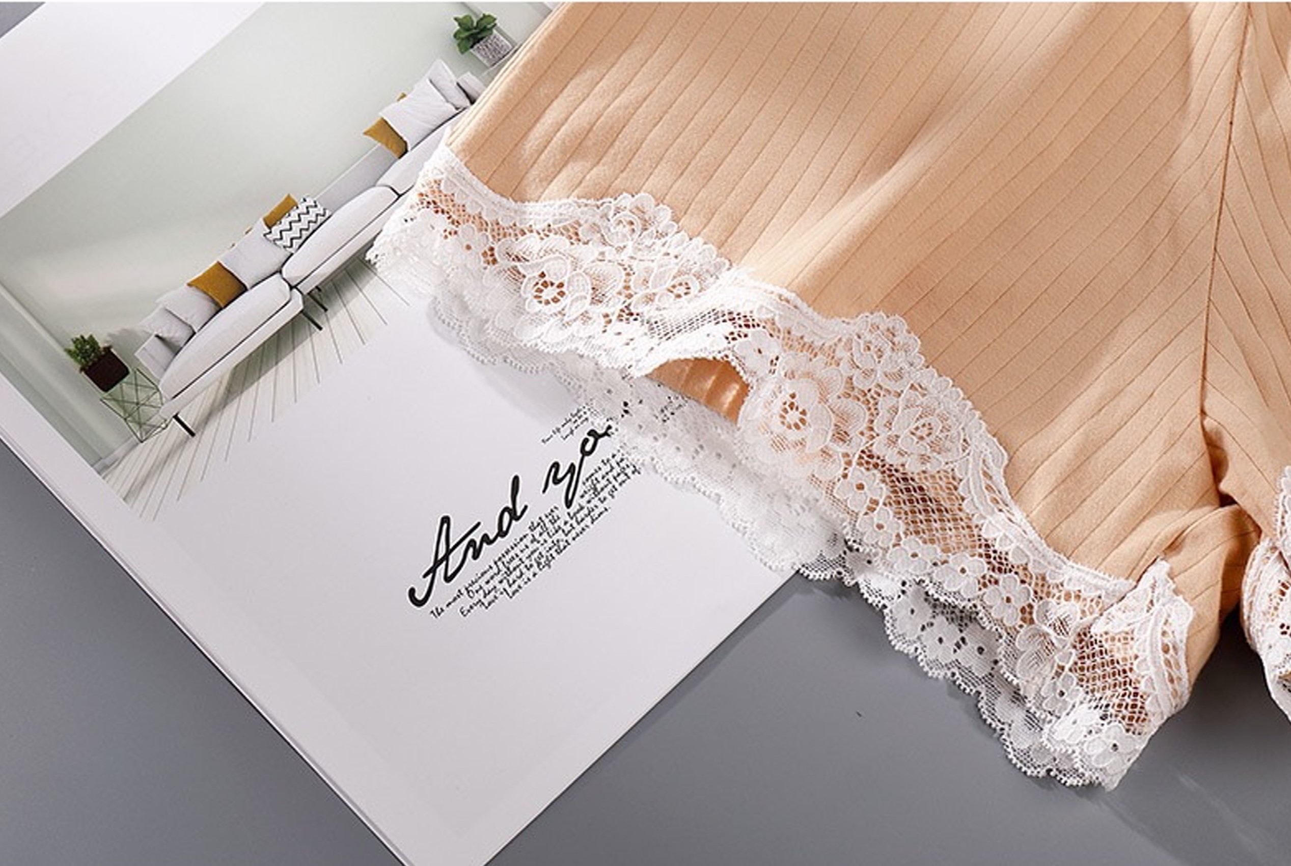 Viền ren nền nã: Ren hoa văn phối gấu quần, không gây cộm, tăng vẻ quyến rũ, tôn nét duyên dáng.