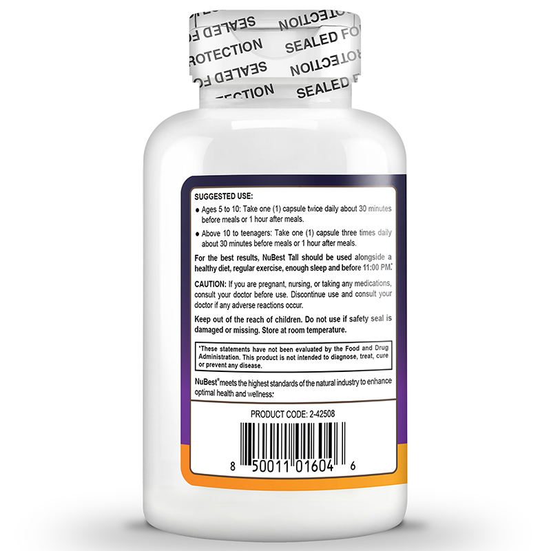 - Để có hiệu quả tốt, nên được sử dụng kết hợp NuBest Tall với chế độ ăn lành mạnh, tập thể dục thường xuyên, ngủ đủ và ngủ trước 11h tối. Lưu ý khi sử dụng: Không sử dụng nếu tem an toàn bị rách hở. Không dùng cho người mẫn cảm, kiêng kỵ với bất kỳ thành phần nào của sản phẩm. Nếu đang mang thai, cho con bú hoặc đang dùng bất kỳ loại thuốc nào nên tham khảo ý kiến bác sĩ trước khi sử dụng. Ngừng sử dụng sản phẩm và liên hệ với bác sĩ nếu có bất kì tác dụng phụ nào xảy ra. ★ Chứng nhận sản phẩm Tại Mỹ: Thực phẩm bảo vệ sức khỏe NuBest Tall được sản xuất trên dây chuyền đạt GMP. Sản phẩm đã được cơ quan chức năng của Mỹ cấp phép lưu hành tự do trên toàn liên bang Mỹ. Tại Việt Nam: Sản phẩm đã được Cơ quan nhà nước cấp giấy tiếp nhận đăng ký bản công bố sản phẩm số: 62/2022/ĐKSP. Giấy xác nhận quảng cáo số: 1741/2022/XNQC-ATTP. Nhận biết sản phẩm: Để đề phòng hàng kém chất lượng trên thị trường, mỗi sản phẩm TPBVSK do TVBUY phân phối đều có gắn tem chống hàng giả của Bộ Công An. Sau khi nhận sản phẩm TPBVSK NuBest Tall từ nhân viên giao hàng, bạn hãy cào nhẹ lớp bạc trên tem để kiểm tra chất lượng sản phẩm qua tin nhắn. ★ Thông tin chi tiết
