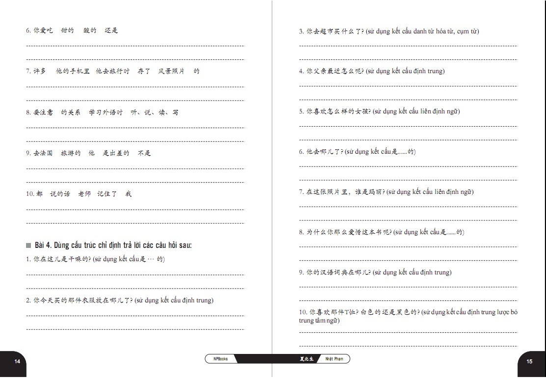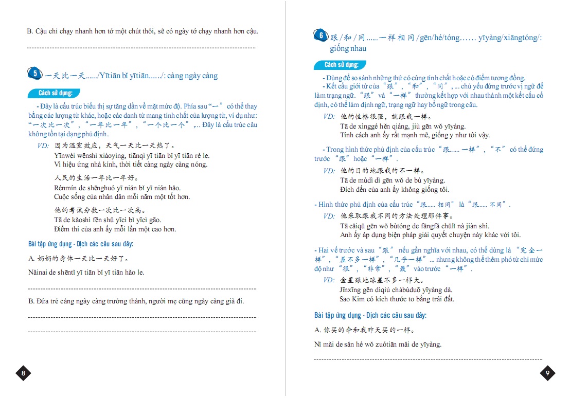 ✨Combo Bài tập củng cố cấu ngữ pháp HSK cấu trúc giao tiếp & luyện viết HSK4-5 và Tuyển tập cấu trúc cố định tiếng Trung ứng dụng