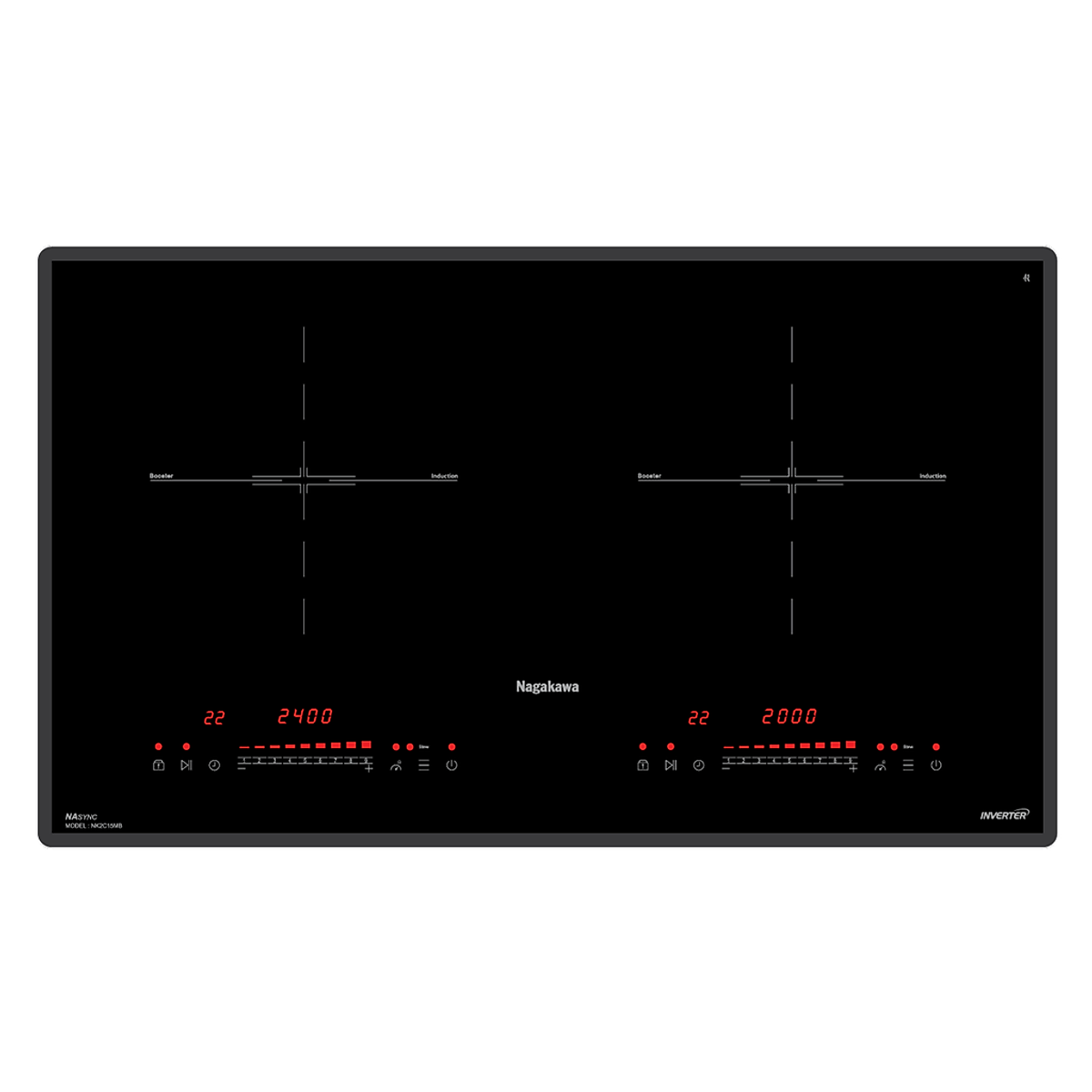 Bếp đôi điện từ Nagakawa NK2C15MB sử dụng công nghệ biến tần Inverter kiểm soát công suất của thiết bị, nhằm tránh hao phí năng lượng trong quá trình sử dụng. Nguyên tắc cơ bản của công nghệ Inverter là dựa trên kiểm soát từng tần số dao động (Hz) của các bảng mạch bên trong bếp, giúp đảm bảo độ ổn định của bếp, tiết kiệm tối đa năng lượng và gia tăng tính năng thông minh cho bếp.