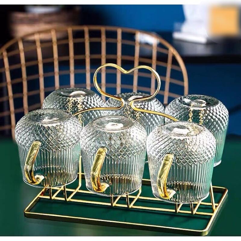 Giá úp ly, kệ úp cốc, chất liệu hợp kim mạ vàng sang trọng, Kèm khay hứng nước