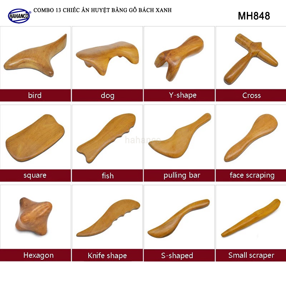 Đây là bộ 13 dụng cụ Mát xa day ấn huyệt toàn thân bằng gỗ thơm, mỗi loại 1 chiếc và có công dụng khác nhau.