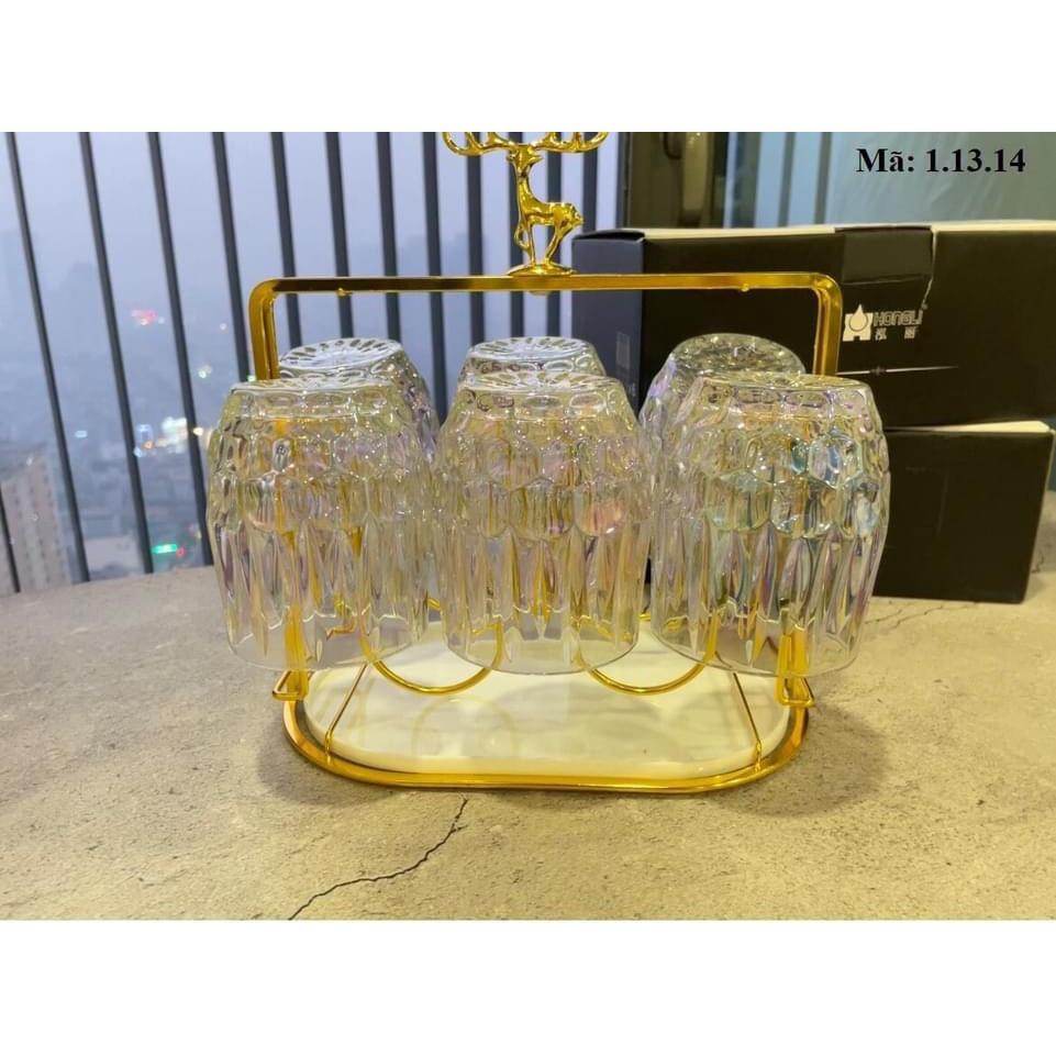 Bộ bình 6 cốc thủy tinh chịu nhiệt mạ vàng cao cấp