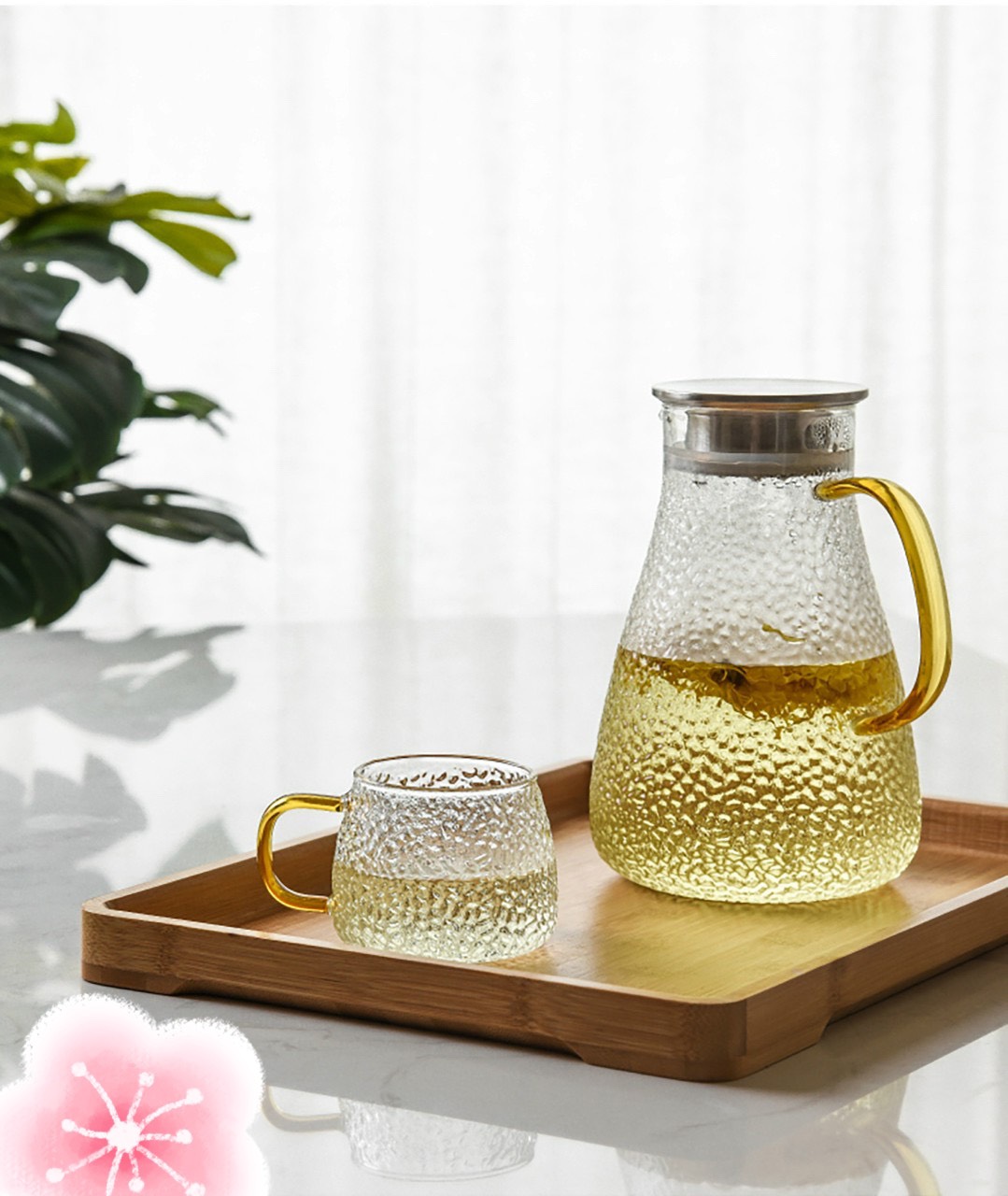 ✨COMBO BỘ BÌNH KÈM 6 CỐC THỦY TINH CHỊU NHIỆT VÂN SẦN CAO CẤP VÀ KHAY GỖ - VD79
