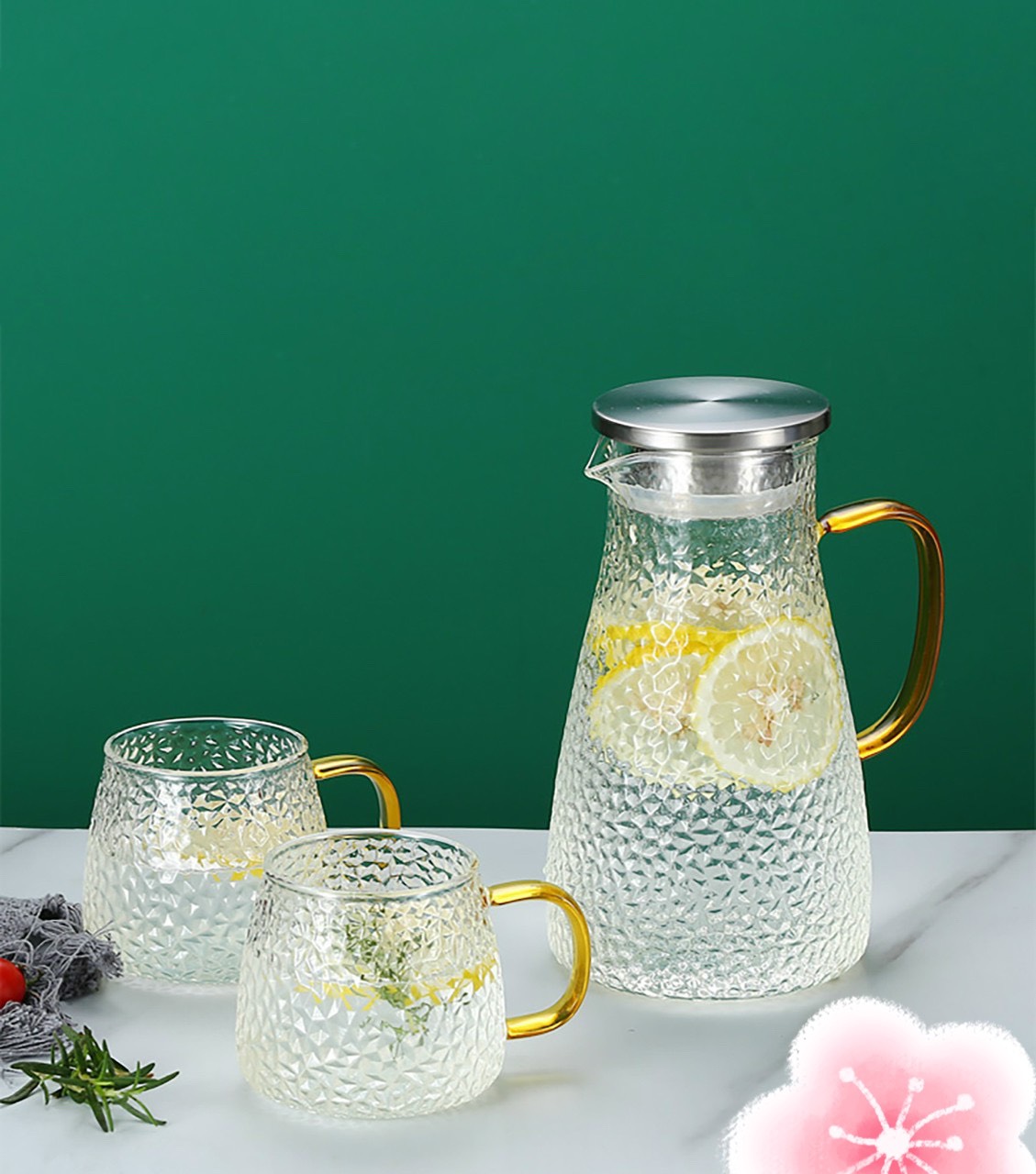 Bộ bình 6 cốc thủy tinh chịu nhiệt mạ vàng cao cấp