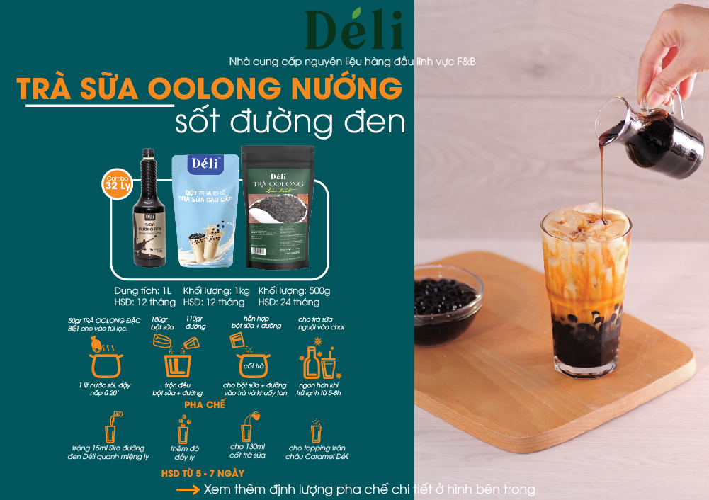 ✨Combo Bột Sữa Cao Cấp 1kg+Trà Olong Nướng 500gr+ siro đường đen Déli 1lit [nguyên liệu pha chế trà sữa Olong sốt đường đen] HSD: 12 tháng