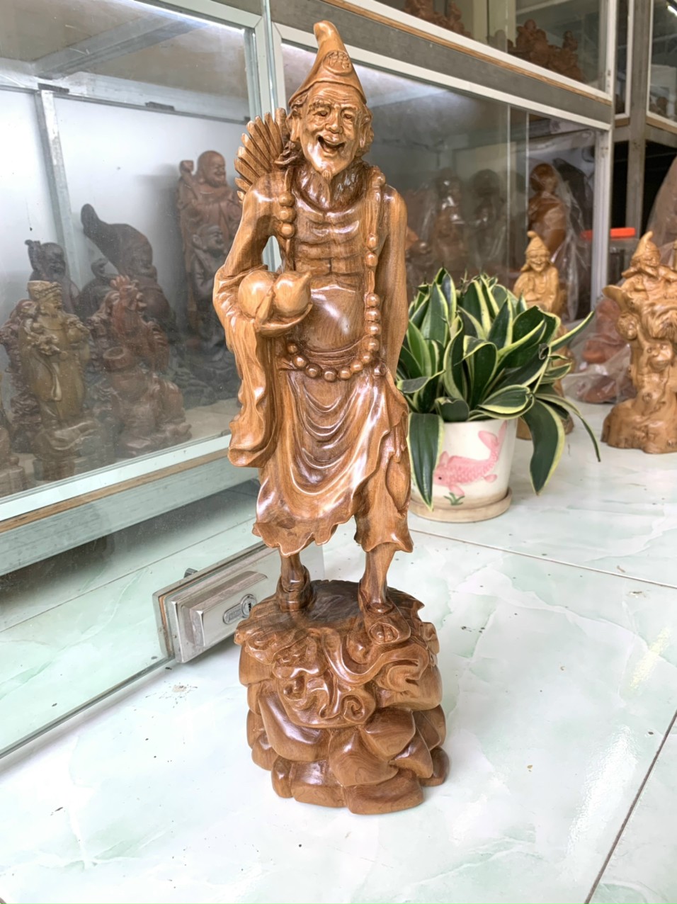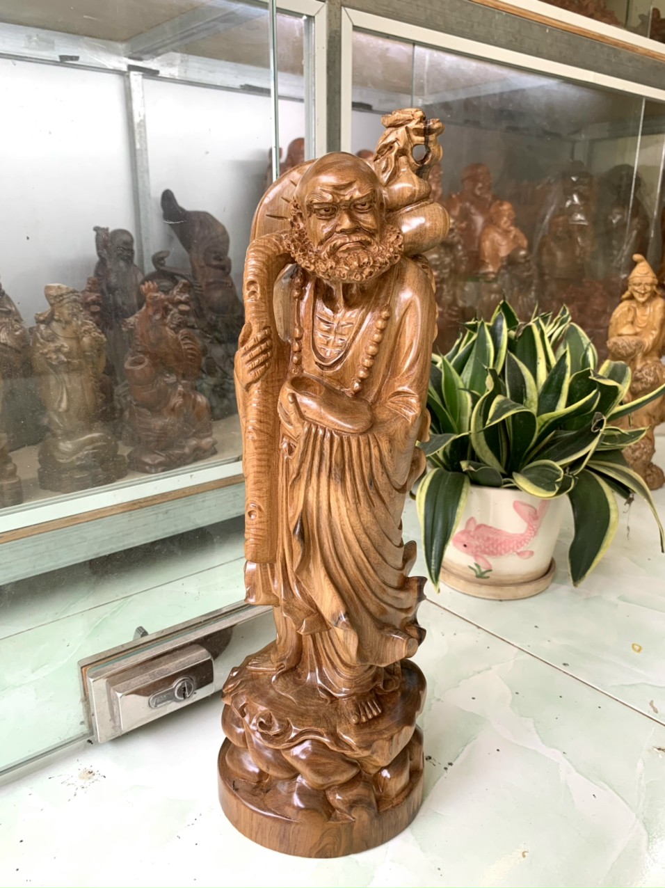 Mua tại Tiktok_ Cặp tượng tế công và đạt ma sư tổ được làm bằng chất liệu gỗ bách xanh liền khối tự nhiên 100%