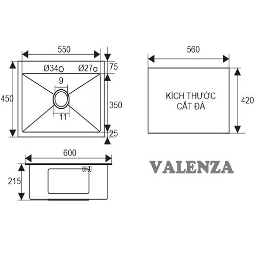 Chậu 1 hố Valenza được làm từ chất liệu inox chịu va đập tốt, hạn chế bám bụi, không tác dụng với hoá chất thông thường đảm bảo an toàn cho sức khỏe lại dễ dàng vệ sinh và có độ bền cao.