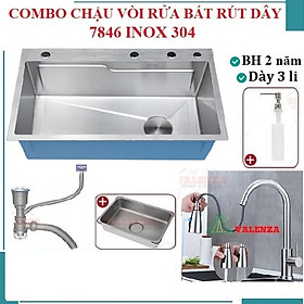 Combo bao gồm: chậu rửa chén bát 1 hố lớn Valenza size 7846 inox 304 100%, vòi rửa bát rút dây Valenza sus304, bộ xả to ngăn mùi, khay inox kín-TẶNG BÌNH NƯỚC RỬA CHÉN. Đầy đủ như video quay trực tiếp sản phẩm, khách hàng tham khảo thêm video để thêm thông tin.