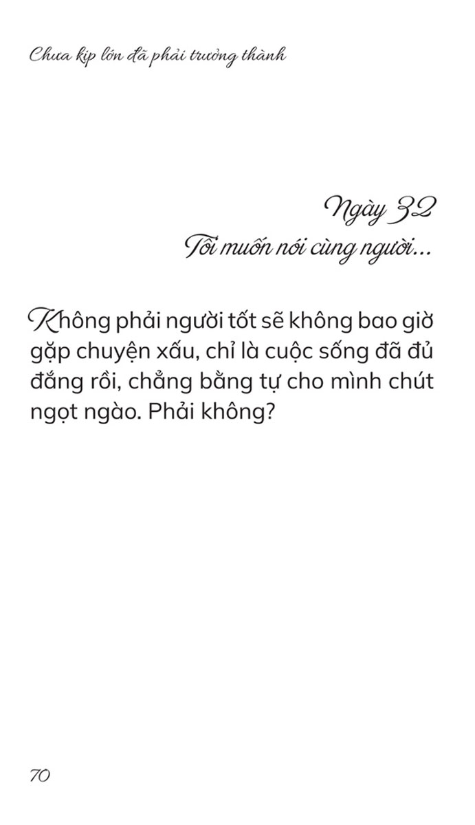 Sẽ có những ngày, bạn cảm thấy mọi thứ xung quanh thật khó khăn và khiến bạn muốn gục ngã. Chẳng ai muốn trưởng thành khi bản thân chưa sẵn sàng, nhưng cũng không có chuyến đi nào trên cuộc đời là miễn phí. Thử thách và chông gai chính là để giúp bạn nâng cấp bản thân mình.