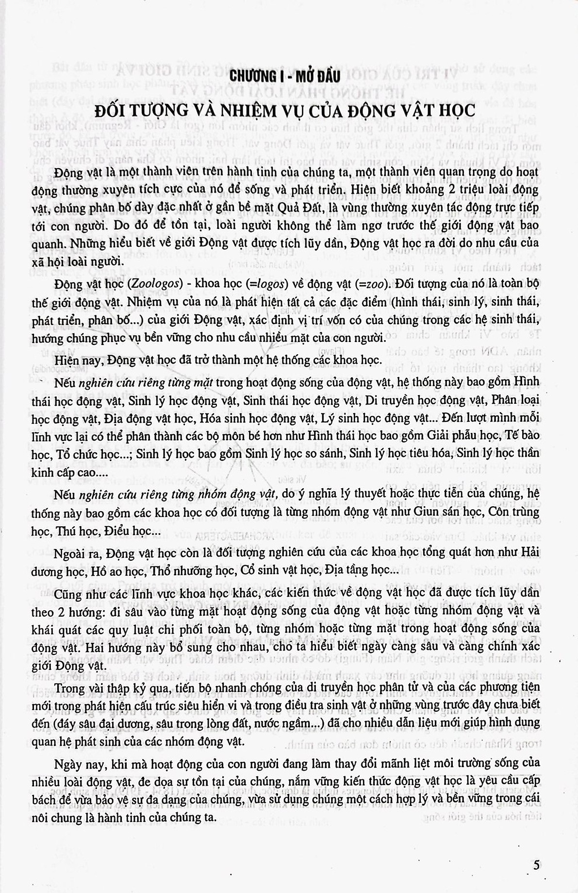 Động vật là một thành viên rất quan trọng trên Trái Đất, phong phú và đa dạng. Do hoạt động thường xuyên tích cực để sống và phát triển, động vật có quan hệ trực tiếp đến loài người. Vì thế, ngay từ thời cổ đại loài người đã chú ý tới các loài động vật. Động vật học đã ra đời từ những ngày sơ khai đó, nghĩa là động vật học ra đời chính là do nhu cầu của xã hội loài người. Động vật học, tên khoa học là Zoologos (khoa học (= logos) nghiên cứu về động vật (= Zoo)). Như vậy, đối tượng của Động vật học là giới động vật và nhiệm vụ của Động vật học là tìm hiểu, nghiên cứu tất cả các đặc điểm hình thái, cấu tạo, sinh lí, sinh thái, phát triển, tiến hóa, phân bố, quan hệ của động vật với con người, hướng chúng phục vụ cho sự phát triển bền vững của sinh quyển và bảo vệ đa dạng sinh học. Hiện nay khoa học đã biết và mô tả được khoảng 2 triệu loài động vật phân bố ở các môi trường, thuộc khoảng 45 ngành động vật khác nhau, nhưng quy mô đa dạng của các ngành rất khác xa nhau. Để nghiên cứu tất cả các ngành động vật, Động vật học được tách ra hai phần : Động vật học Không xương sống và Động vật học Có xương sống. Động vật học Có xương sống là bộ phận của Động vật học, nghiên cứu ngành động vật cuối cùng của Giới động vật - ngành Dây sống (Chordata). Động vật Dây sống bao gồm các nhóm động vật có quan hệ nhiều mặt với cuộc sống loài người. Ngày nay, Động vật học đã trở thành một hệ thống các khoa học về động vật và được phân ra hai lĩnh vực : Động vật học đại cương và Động vật học chuyên ngành. Thuộc lĩnh vực thứ nhất gồm nhiều bộ môn nghiên cứu từng phần chuyên biệt về động vật như Hình thái học động vật, Sinh lí học động vật, Sinh thái học động vật, Di truyền học động vật, Phân loại học động vật, Địa động vật học, Hóa sinh học động vật, Lí sinh học động vật, Cổ sinh vật học động vậ Mỗi bộ môn này đến lượt mình lại có thể phân ra các khoa học nhỏ hơn, ví dụ : Hình thái học bao gồm Giải phẫu học, Tổ chức học, Tế bào học Thuộc lĩnh vực thứ hai bao gồm các môn học nghiên cứu về từng nhóm động vật : Động vật nguyên sinh (Protozoology), Nhuyễn thể học (Molluscology), Côn trùng học (Entomology), Ngư loại học (Ichthyology), Lưỡng cư - Bò sát học (Herpetology), Điểu loại học (Ornithology), Thú học (Theriology hay Mammalogy) Nghiên cứu mối quan hệ của các loài động vật cùng sống chung trong một môi trường đã hình thành các môn học tổng quát hơn như Kí sinh trùng học (Parasitology), Thủy sinh vật học (Hydrobiology).