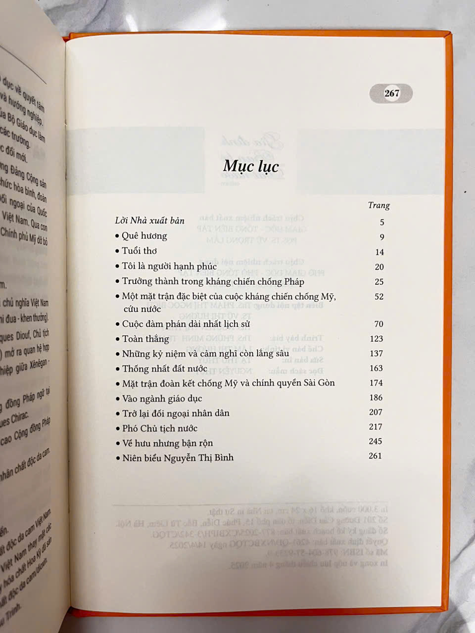 Cuốn sách tái hiện cuộc đời của bà, một nhân chứng sống đã tham gia, chứng kiến những chuyển biến thăng trầm của lịch sử, từ thời thơ ấu cho đến khi tham gia hoạt động cách mạng, những dấu mốc quan trọng trong cuộc đấu tranh giành độc lập dân tộc và cả khi đã nghỉ hưu, như bà đã chọn một đầu đề thật giản dị: “Gia đình, bạn bè và đất nước” - những nguồn gốc đã tạo nên sức mạnh đặc biệt trong bà.