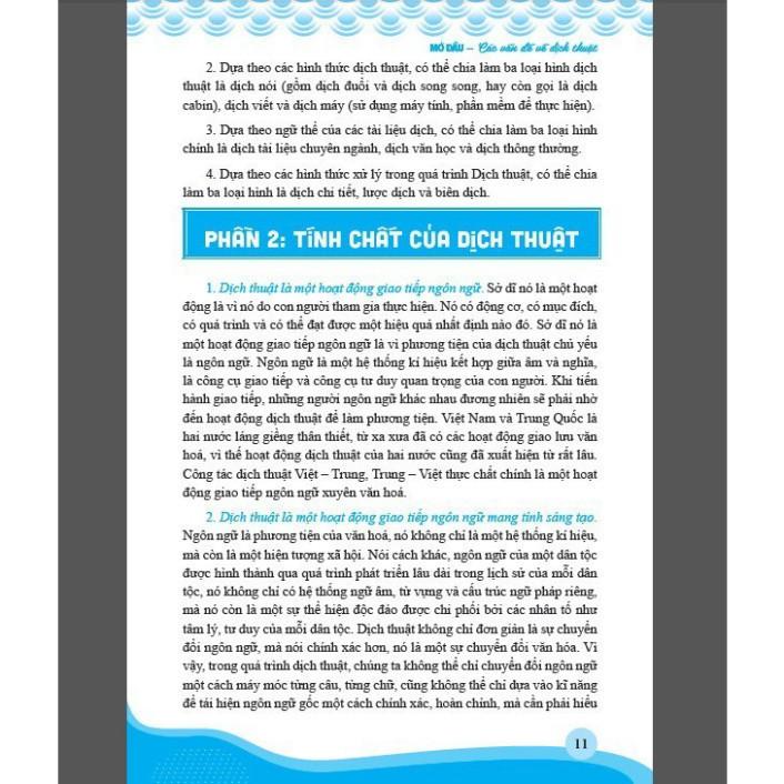 CHƯƠNG I đến CHƯƠNG V được biên soạn có độ khó tăng dần, lần lượt phát triển theo thứ tự; (a) dịch từ; (b) dịch cụm từ; (c) dịch câu ngắn; (d) dịch câu dài; (e) dịch đoạn; (f) dịch bài thông qua các chủ đề phong phú, các lĩnh vực thường gặp trong môi trường công việc thực tế như: ngoại giao, du lịch, đời sống, thương mại, pháp luật, giáo dụ Ngoài phần lý thuyết được trình bày một cách ngắn gọn, khoa học và hệ thống, các kiến thức chính đều có phần đối chiếu vị trí, cách dịch của hai ngôn ngữ, qua đó, giúp người học có thể dễ dàng hiểu, nhớ và vận dụng các kiến thức ngay sau khi học. Cuốn sách Kỹ Năng Biên Phiên Dịch Trung – Việt, Việt – Trung thực chiến có thể hỗ trợ một cách hiệu quả nhất cho người học nhờ những ưu điểm nổi bật sau: