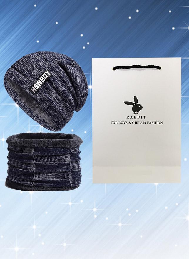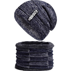 PVN55244 Mũ len cho nam kèm khăn choàng cổ mùa đông giữ ấm tốt