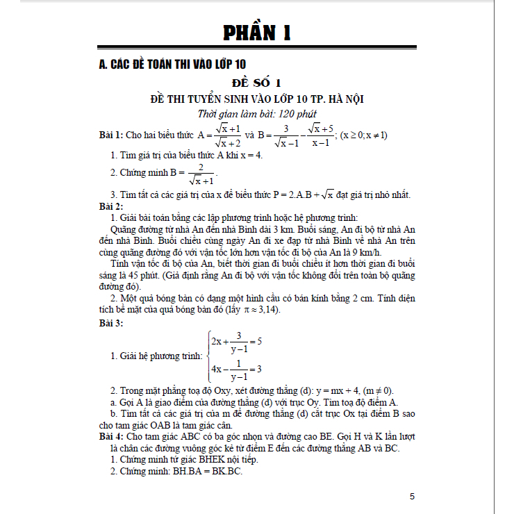 A. Các đề toán thi vào lớp 10 năm học 2020 – 2021 (Hệ đại trà)