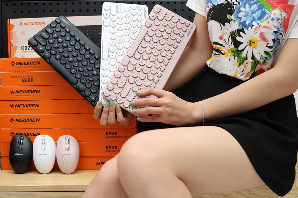 Mua tại TiktokBộ phím chuột không dây K928 - đủ 3 màu -Nhỏ gọn, nhẹ, phím cực êm, độ phản hồi tốt. Cảm giác cầm, sờ, sử dụng rất sướng. +Bàn phím Newmen K928 lấy cảm hứng từ máy đánh chữ cổ, keycap tròn cổ điển, duyên dáng và trang nhã -Truyền và nhận từ xa – kết nối và sử dụng – switch êm ái Thiết kế 84 phím,đơn giản và tinh tế, gọn gàng với những không gian nhỏ Bề mặt thiết kế theo mô phỏng sinh học, thiết kế dạng tròn. Độ bền gấp 3 lần bán phím thông thường +Chuột : Kiểu dáng hiện đại, vật liệu cao cấp , 3 mức DPI tùy chỉnh 1600DPI Max