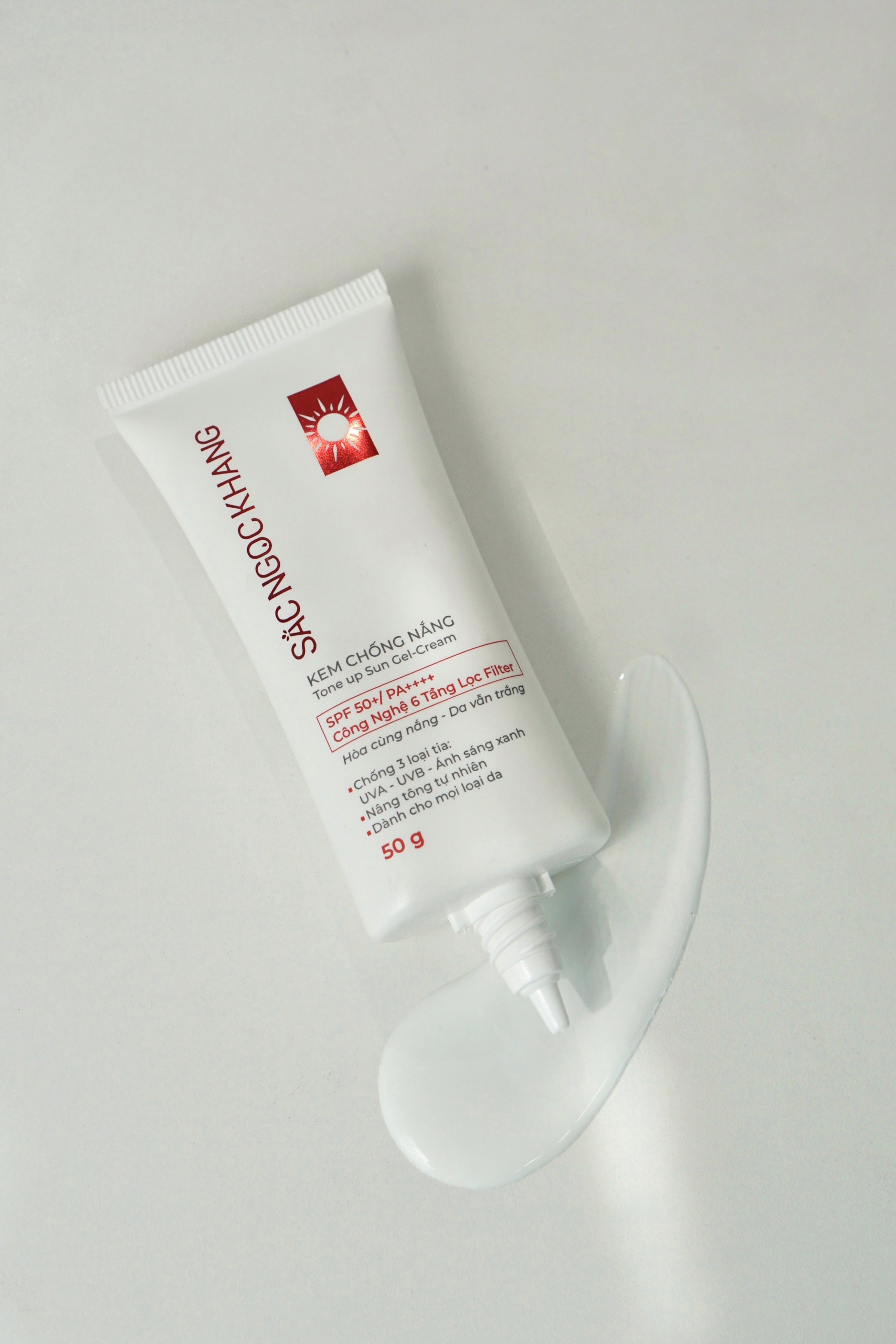 - Làm sạch da sau, lấy lượng sản phẩm vừa đủ, thoa đều lên mặt và massage nhẹ nhàng để kem thấm sâu vào da C. Kem Chống Nắng Sắc Ngọc Khang có chỉ số SPF 50 PA++++. Xuất xứ thương hiệu : Sắc Ngọc Khang (Việt Nam) Mã sản phẩm : CSN08