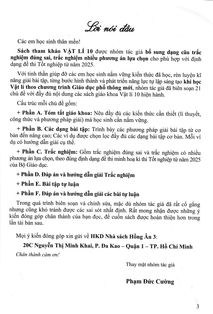 Nhằm giúp đỡ các em học sinh nắm vững kiến thức đã học, rèn luyện kĩ năng giải bài tập, từng bước hình thành và phát triển năng lực độc lập sáng tạo khi học Vật lí theo chương trình Giáo dục phổ thông mới, N trân trọng giới thiệu cuốn sách tham khảo lớp 10: Sách Tham Khảo Vật Lí Lớp 10 (Dùng Chung Cho Các Bộ SGK Hiện Hành)