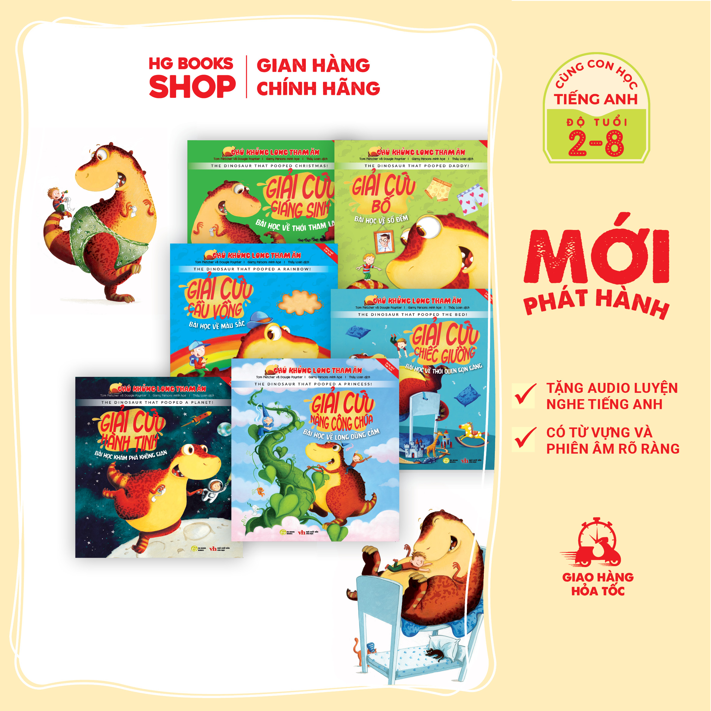 - Công ty phát hành: CÔNG TY TNHH HG BOOKS Chú khủng long tham ăn - bộ 6 cuốn gieo mầm tính cách, phát triển IQ, EQ cho bé - Phiên bản song ngữ Anh - Việt