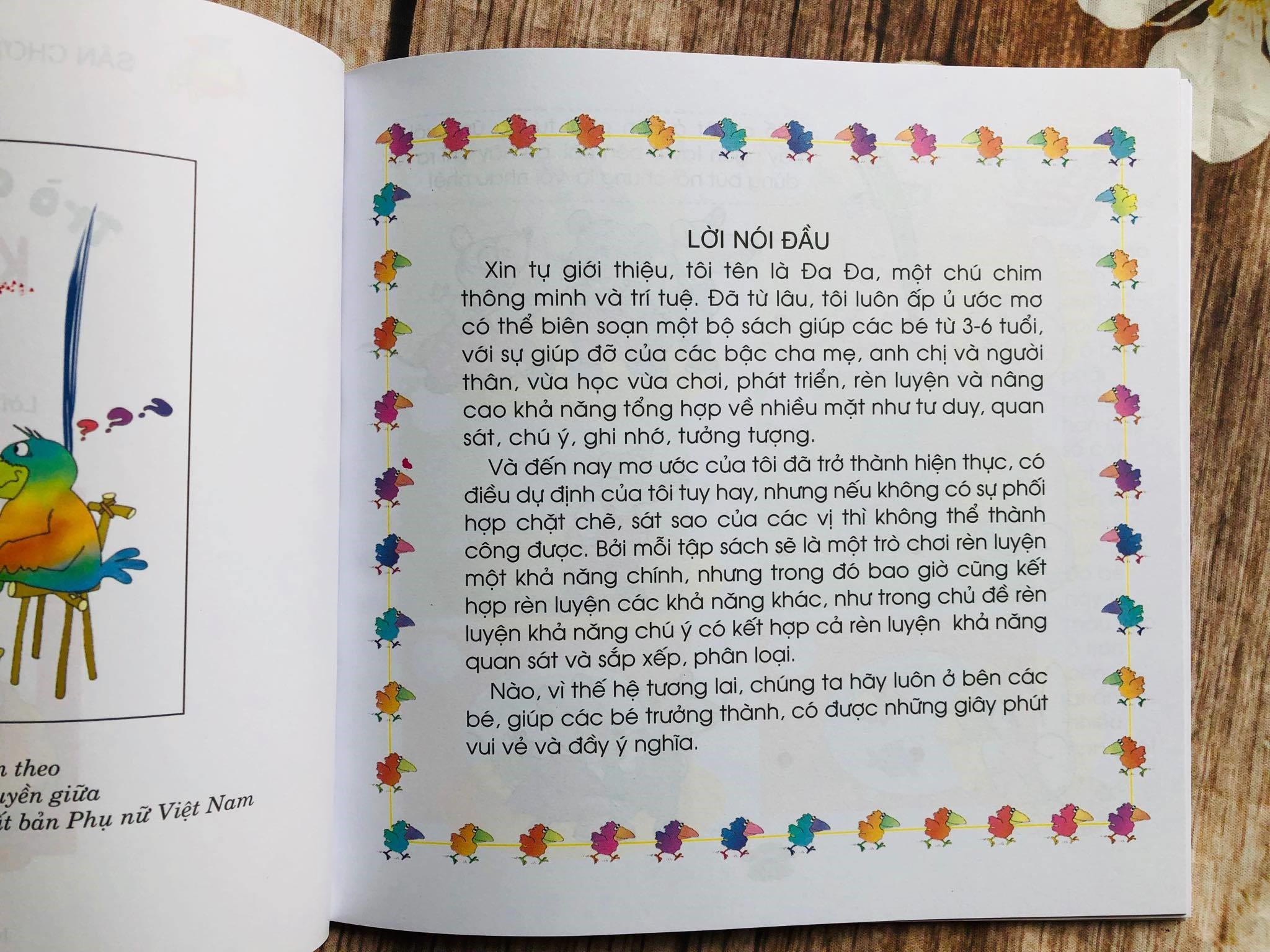 Đây là một bộ sách giúp các bé từ 3-6 tuổi vừa học vừa chơi, phát triển, rèn luyện và nâng cao khả năng tổng hợp về nhiều mặt như tư duy, quan sát, chú ý, ghi nhớ, quan sát, chú ý, ghi nhớ, tưởng tượng.