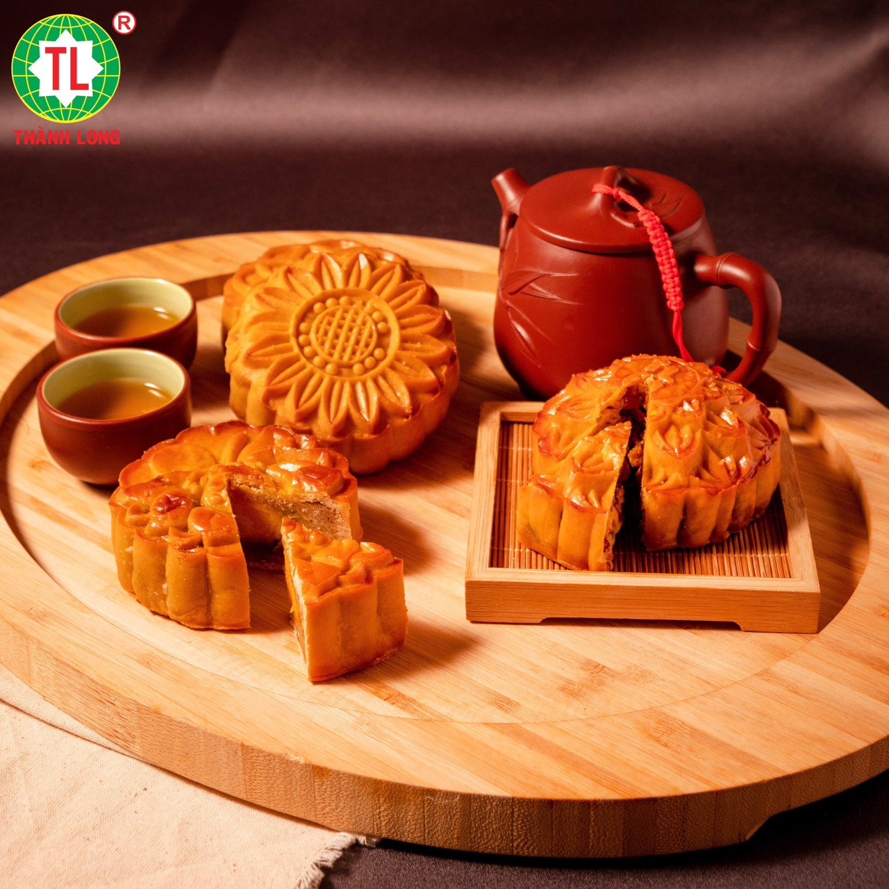 COMBO SUPER A5 - Thành Long gồm 4 bánh : - Nhân đậu xanh1 trứng (150g) - Nhân hạt sen 1 trứng (150g) - Nhân khoai môn 1 trứng (150g) - Nhân dừa sầu riêng