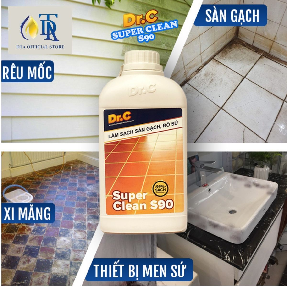 ✨Combo Tẩy Bồn Cầu Bị Ố Vàng,Tẩy Gạch Men,Tẩy Xi Măng,Nước Tẩy Nhà Vệ Sinh,Tẩy Rong Rêu Vôi Vữa Dr.C Super Clean S90 1 Lít