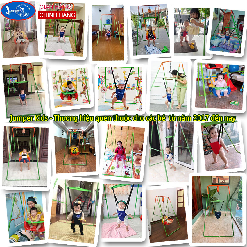 - Xích đu nhún nhảy tập đi Jumper Kids cho bé tha hồ nhún nhảy mà không cần bế bồng, giúp ba mẹ có thêm nhiều thời gian để làm việc khác trong khi con yêu vẫn được vui chơi trong khoảng không gian an toàn.
