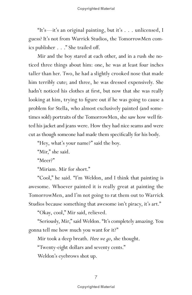 Miriam's family should be rich. After all, her grandfather was the co-creator of smash-hit comics series The TomorrowMen. But he sold his rights to the series to his co-creator in the 1960s for practically nothing, and now that's what Miriam has: practically nothing. And practically nothing to look forward to either. How can she afford college when her family can barely keep a roof above their heads?