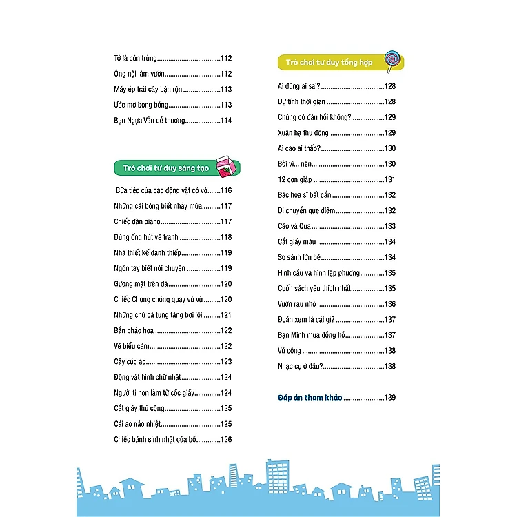 Bé tư duy, bé sáng tạo là bộ sách mang đến cho các độc giả nhí vô vàn trò chơi và hoạt động thú vị, chẳng hạn như tô màu, cắt dán, giải ô chữ,