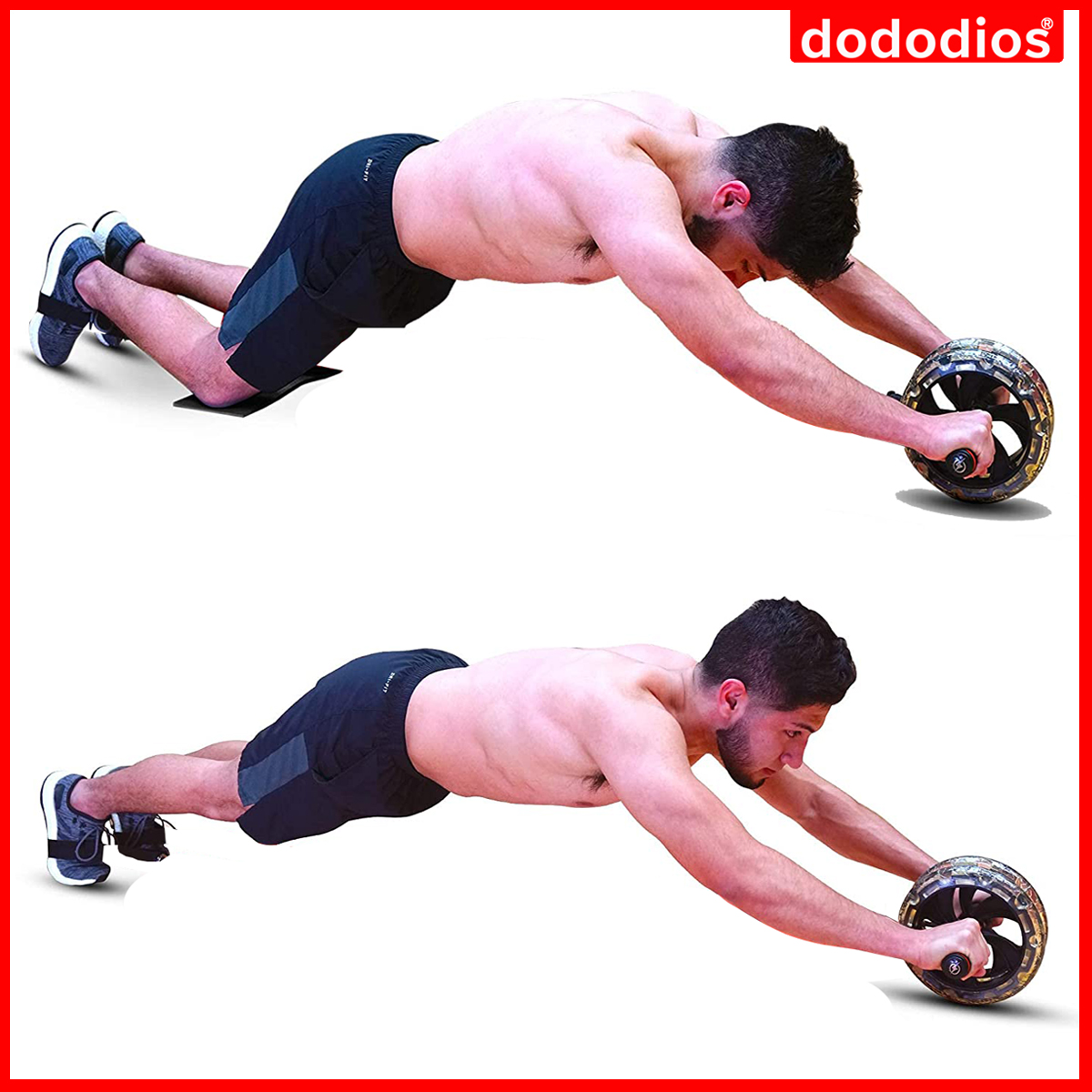 Con Lăn Tập Bụng 2 Bánh Cao Cấp Chính Hãng Dododios – Kèm Thảm Lót – Dụng Cụ 2 Bánh Tập Cơ Bụng 6 Múi Bọc ABS Dẻo Bám Sàn