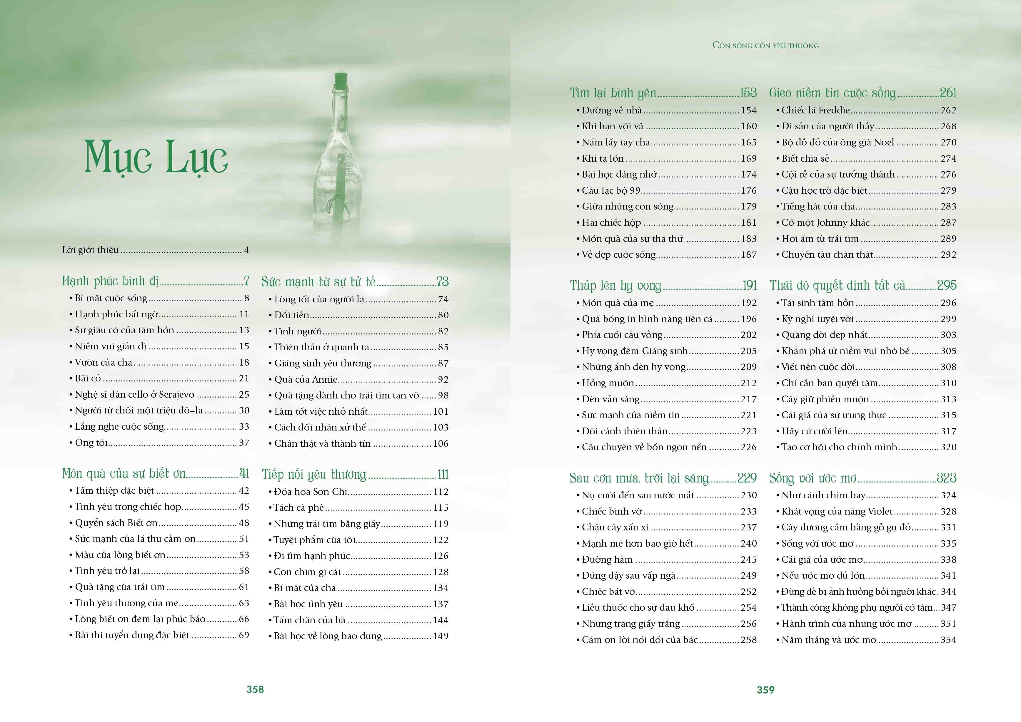 Hy vọng sau khi đọc xong những câu chuyện trong Còn Sống Còn Yêu Thương, quyển sách sẽ góp phần giúp bạn có cái nhìn lạc quan và tươi vui hơn trong cuộc sống.