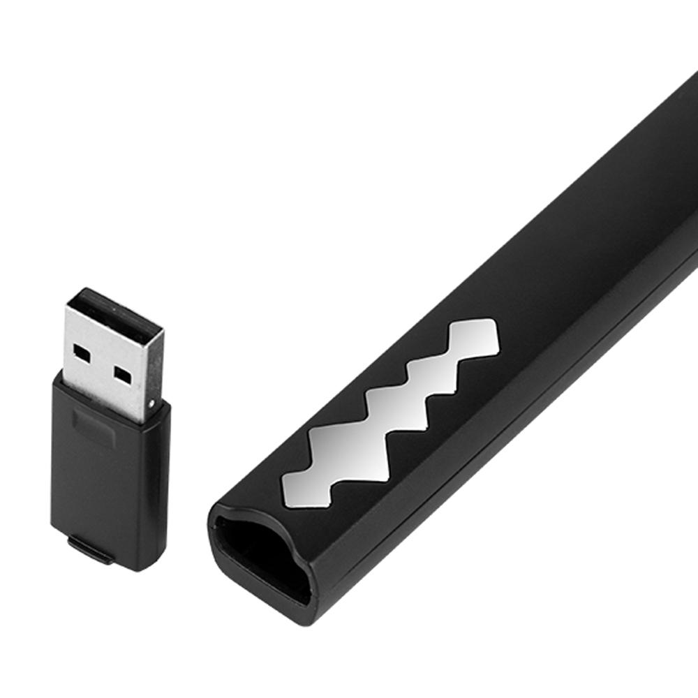 The 2.4GHz Wireless Laser Presenter releases the user from the computer. It supports page up and down, full screen, black screen, hyperlinks and red laser. Just gently press the relevant function button, you can control