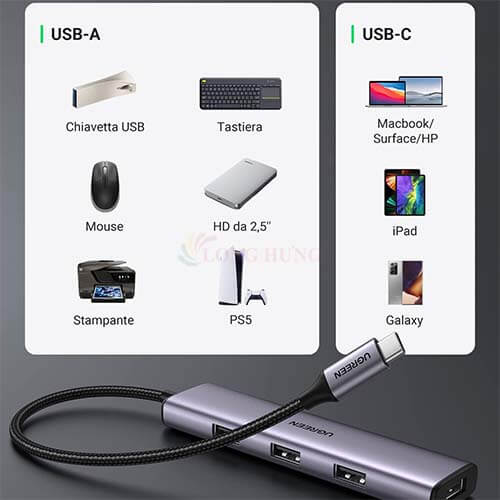 Ugreen 20277 1m 4 ports usb 2.0 hub with micro usb power port màu đen cr106 1. Input : USB-A 2. Output : 4 Port USB 2.0 . 3. Color : Black 4. Length :