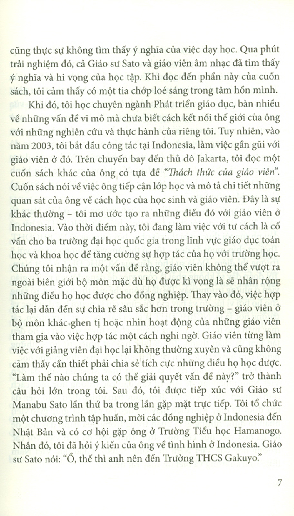 Cuốn sách này là sự kết hợp từ một cuốn sách của Giáo sư Manabu Sato và hai chương sách của thầy Masaaki Sato. Cuốn sách đầu tiên “Đổi mới nhà trường: Thiết kế và