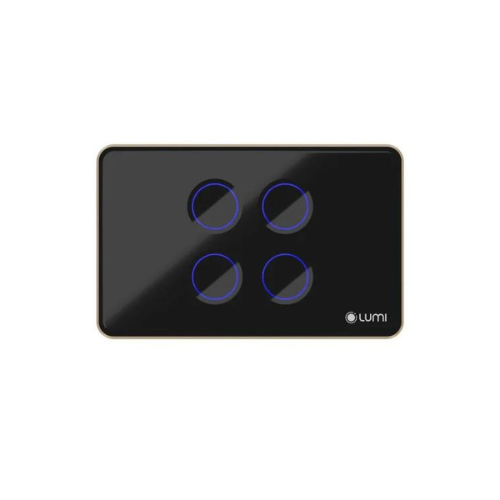- Công tắc cảm ứng kính lõm viền vàng Lumi thiết kế sang trọng, tinh tế - chuẩn nhà hiện đại. - Thiết bị được dùng bật tắt các thiết bị điện trong nhà như: