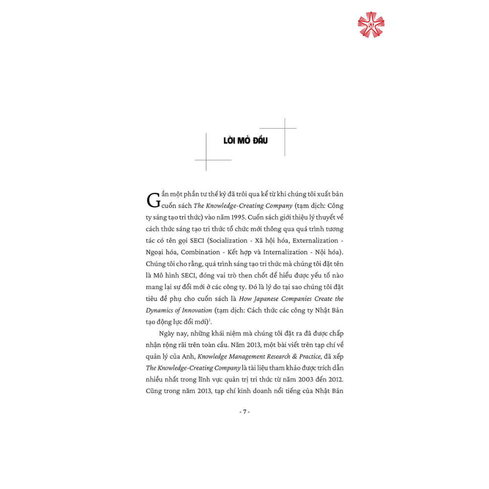 Với tiêu chí thúc đẩy một hình thức lãnh đạo nhân văn hơn, sử dụng các khả năng độc đáo của con người để đổi mới vì lợi ích của xã hội, cuốn sách không chỉ là nguồn tài liệu quý báu dành cho những người cần đi từ lý thuyết đến thực tiễn, vận dụng tri thức một cách hữu ích và áp dụng tri thức vào hành động, mà còn là nguồn tham khảo có giá trị cho các nhà lãnh đạo, nhà quản lý, học giả và đặc biệt là những bạn trẻ mong muốn trở thành những nhà lãnh đạo đẳng cấp trong một thế giới được thúc đẩy bởi những người con người liên tục đổi mới.
