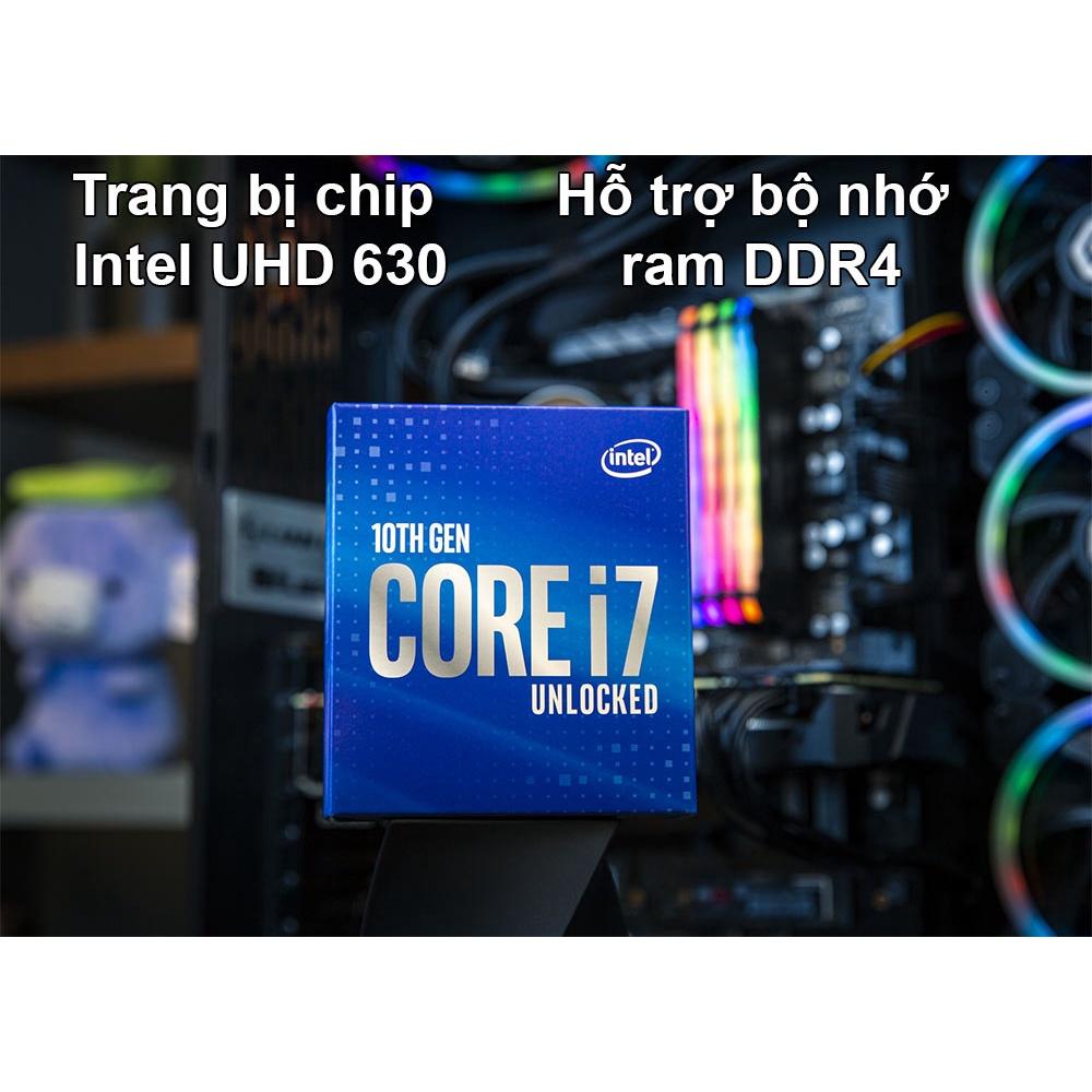 Intel đã trang bị và tích hợp sẵn chip đồ họa Intel UHD 630 cho con chip CPU Intel Comet Lake Core i7-10700. Mang đến khả năng xử lý đồ họa nằm mức mức khá tốt khi xử lý hình ảnh ở độ phân giải lên đến 4K một cách dễ dàng mà chưa cần phải dùng đến card đồ họa rời.