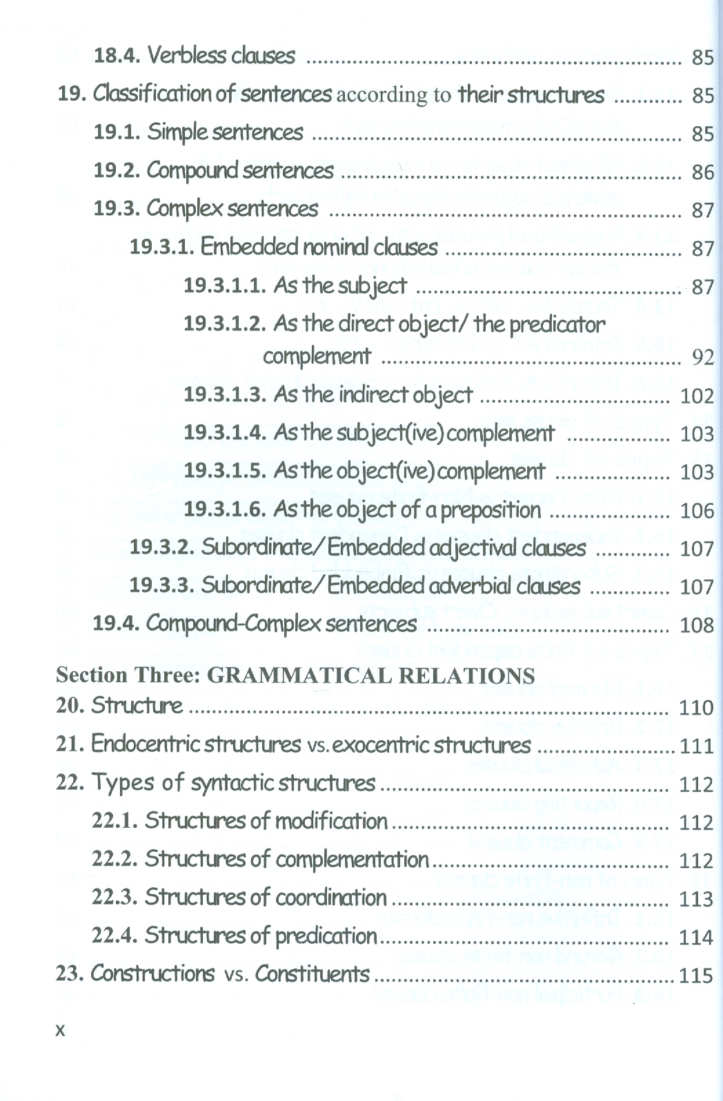 Trong phần nội dung của sách còn có đưa vào tên gọi tương đương trong tiếng Việt của các thuật từ, thuật ngữ quan trọng nhất trong Cú pháp học tiếng Anh. Các thuật từ và thuật ngữ này, cũng với (i) ký hiệu viết tắt và (ii) tên gọi tiếng Việt của chúng, được trình bày một cách có hệ thống trong Bản liệt kệ các quy ước về ký hiệu (List of notational conventions) ở ngay đầu quyển sách nhằm hỗ trợ người học tiện tra cứu khi cần.
