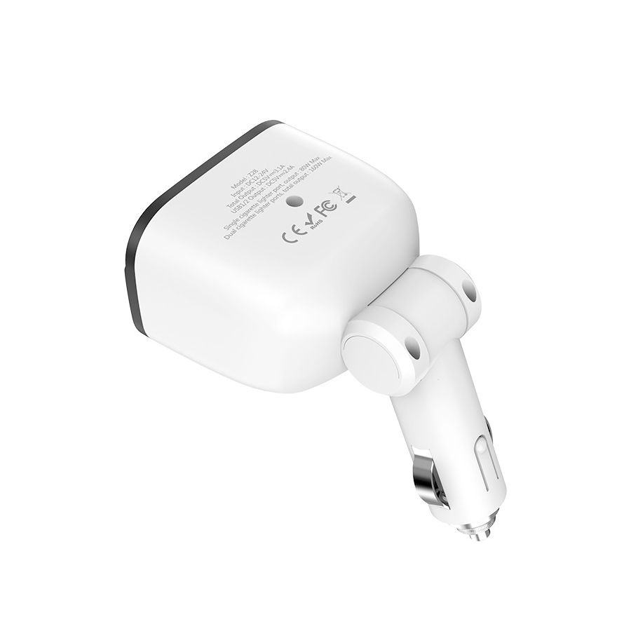 ✨Củ sạc 2 cổng 3.4A kèm 2 cổng tẩu trên xe hơi Hoco Z28 + Cáp Micolo - Chính Hãng