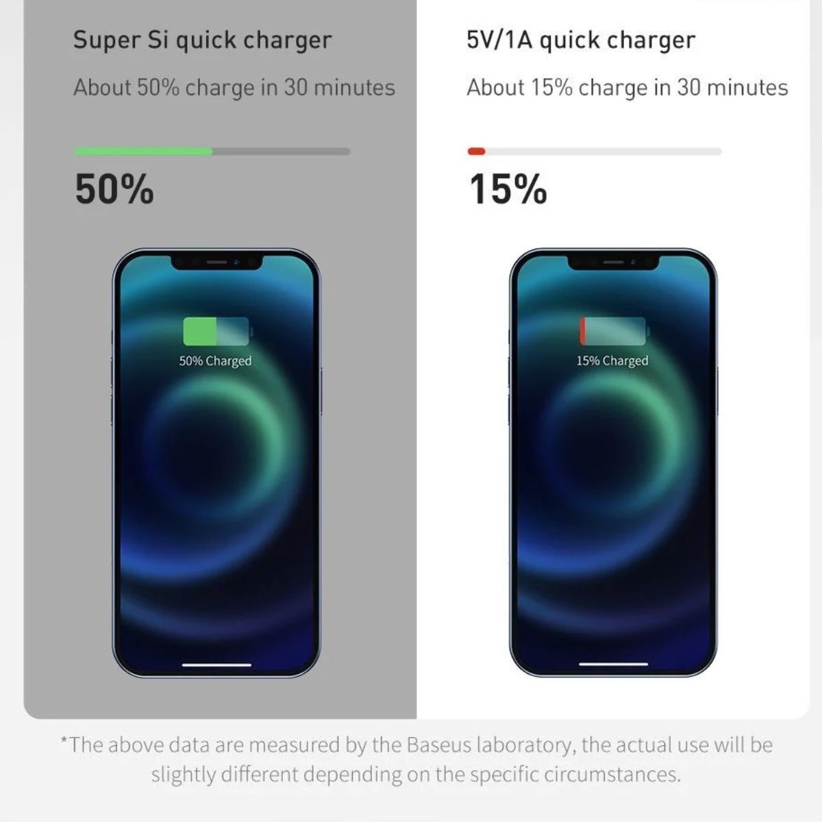 Giới thiệu sản phẩm Củ sạc nhanh nhỏ gọn Baseus Super Si Quick Charger 1C 20W - CCSUP Sản phẩm với kích thước nhỏ gọn , hỗ trợ sạc nhanh Power delivery chuẩn mới và Quick charge . Được thiết kế chuyên dụng cho i-Phone 12 series, i-Phone 11 /i-Pad và các Smart-phone And-roid khác.