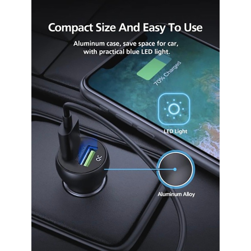 • Kích thước nhỏ gọn và dễ sử dụng: Vỏ nhôm có thiết kế nhỏ gọn, tiết kiệm không gian cho xe, có đèn LED màu xanh tiện dụng, hướng dẫn bạn sử dụng khi cắm cổng USB trong điều kiện ánh sáng yếu.