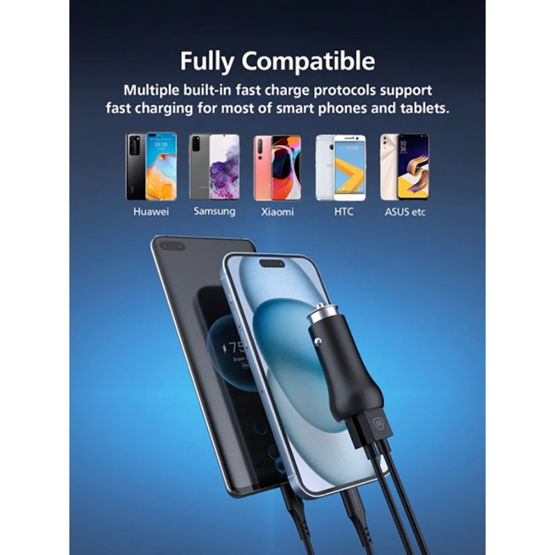 Sạc nhanh đa năng xe hơi Baseus 45W Cổng USB + USB-C PD Why buy??? - Sạc nhanh đa năng xe hơi Baseus 45W Cổng USB + USB-C PD - Tương thích với nhiều dòng máy