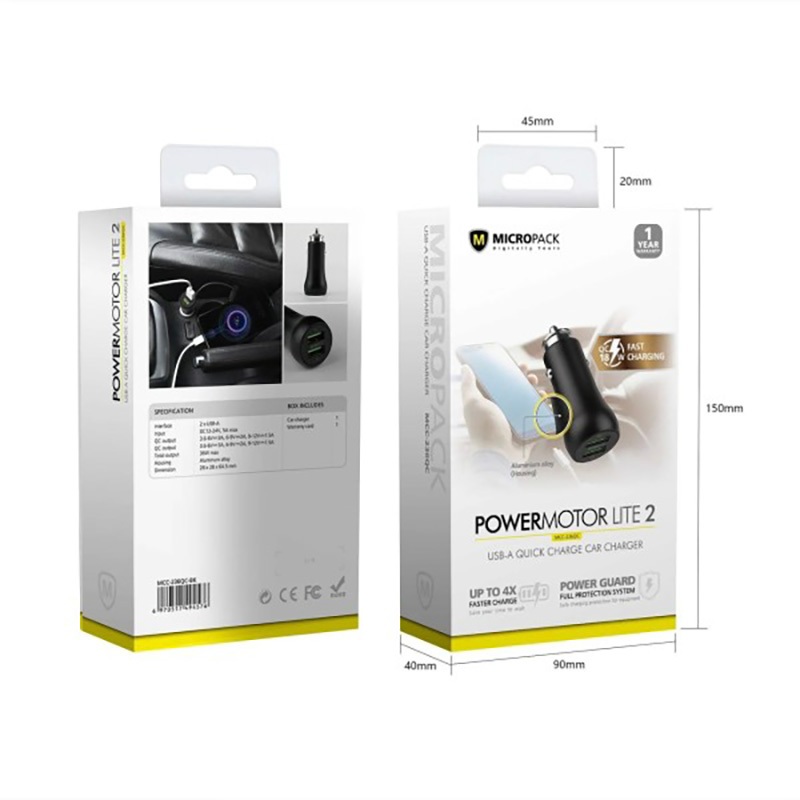 Củ sạc Ôtô MicroPack POWER MOTOR LITE 2 MCC-236QC Hai Cổng USB-A Công Suất 18W Tổng Công Suất 36W