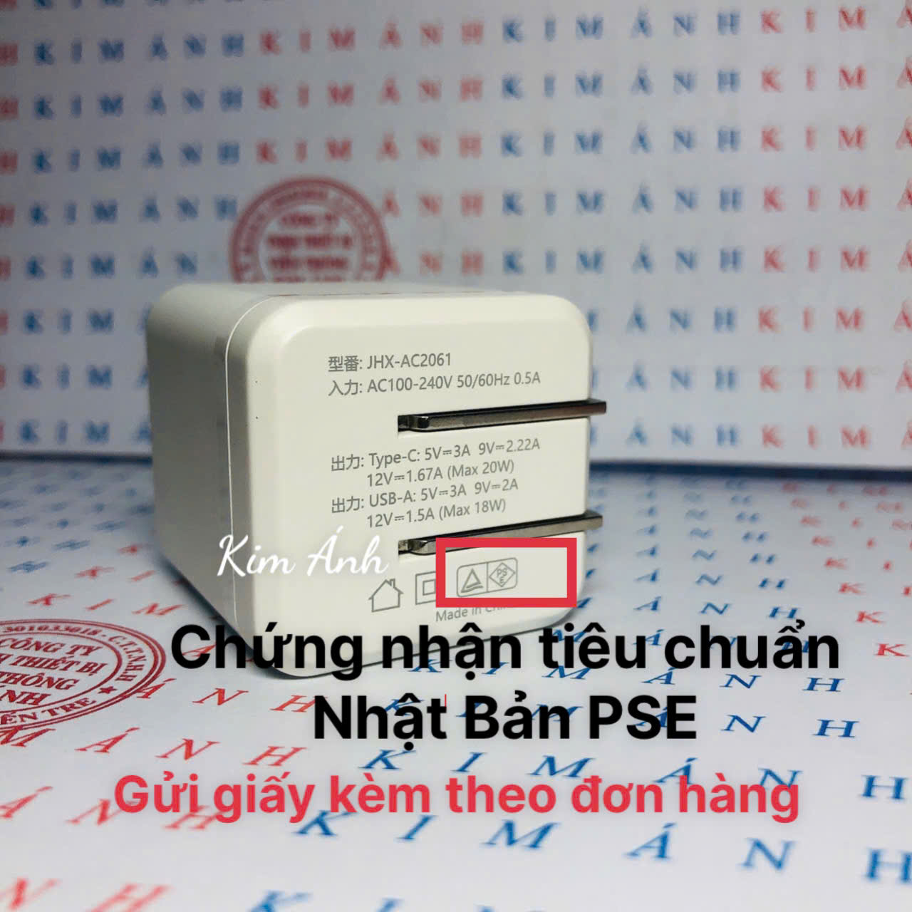 Củ sạc xuất Nhật 20W KFLY ( JHX-AC2061) chứng nhận PSE tiêu chuẩn Nhật Bản, dùng thử 30 ngày, bảo hành chính hãng 12 tháng,