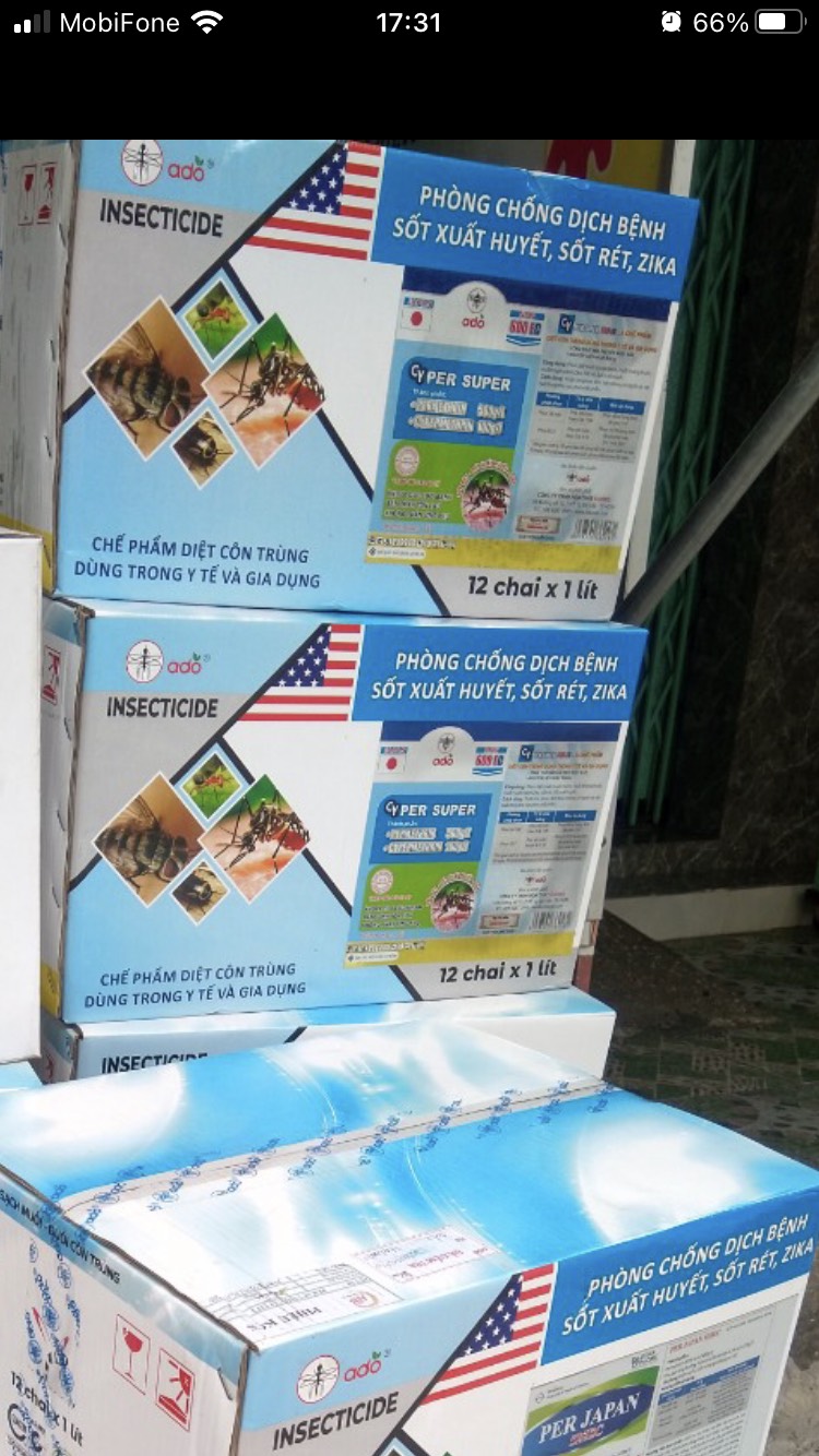 Cty Sản Xuất : Cty TNHH Pesticide Nhật Bản Thành phần : Permethrin 50% + Cypermethrin 10% Cyper Super 600 EC là chế phẩm diệt muỗi và diệt côn trùng hiệu quả được bộ y tế công nhận sử dụng trong gia dụng và y tế. Sản phẩm sử dụng các nguyên liệu nhập ngoại rất an toàn. Nguyên liệu nhập Ấn Độ ( ko phải Trung Quốc nha ) - Sản phẩm sử dụng các nguyên liệu nhập ngoại rất an toàn. - Hàng phun diệt muỗi và ruồi cực mạnh . - tỉ lệ pha : 10ml cho 1lit nước. phun diệt côn trùng trong nhà : 10ml cho 10l nước phun diệt côn trùng cho cây nông nghiệp. Hiệu quả tức thì. hạ gục nhanh - Đặc biệt những trường hợp kháng thuốc thì loại này bao kháng lun. - Mọi người cần tư vấn thì cứ ib mình tư vấn cụ thể trước khi khách quyết định đặt hàng Sản phẩm này là tài sản cá nhân được bán bởi Nhà Bán Hàng Cá Nhân và