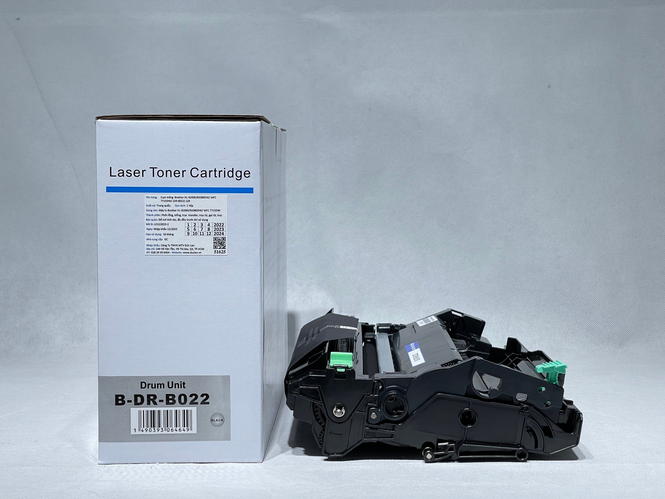 Mua tại TiktokThông số kỹ thuật chính Mã sản phẩm: DR-B022 hoặc DR B027. Loại mực: In laser trắng đen. Tuổi thọ: Khoảng 12.000 trang (với độ phủ mực 5%) đối với sản phẩm chính hãng hoặc tương đương. Một số nhà cung cấp có thể quảng cáo tuổi thọ cao hơn. Công nghệ: Hoạt động dựa trên công nghệ in laser, trong đó trống (drum) được tích điện và tạo ra hình ảnh tĩnh điện, sau đó hút mực từ hộp mực và chuyển lên giấy. Tương thích với các dòng máy in Brother: HL-B2000D, HL-B2080DW. DCP-B7535DW. MFC-B7715DW. (DRB022) Và một số máy khác như HL-B2100D, HL-B2180DW, DCP-B7640DW, MFC-B7810DW. (B027)