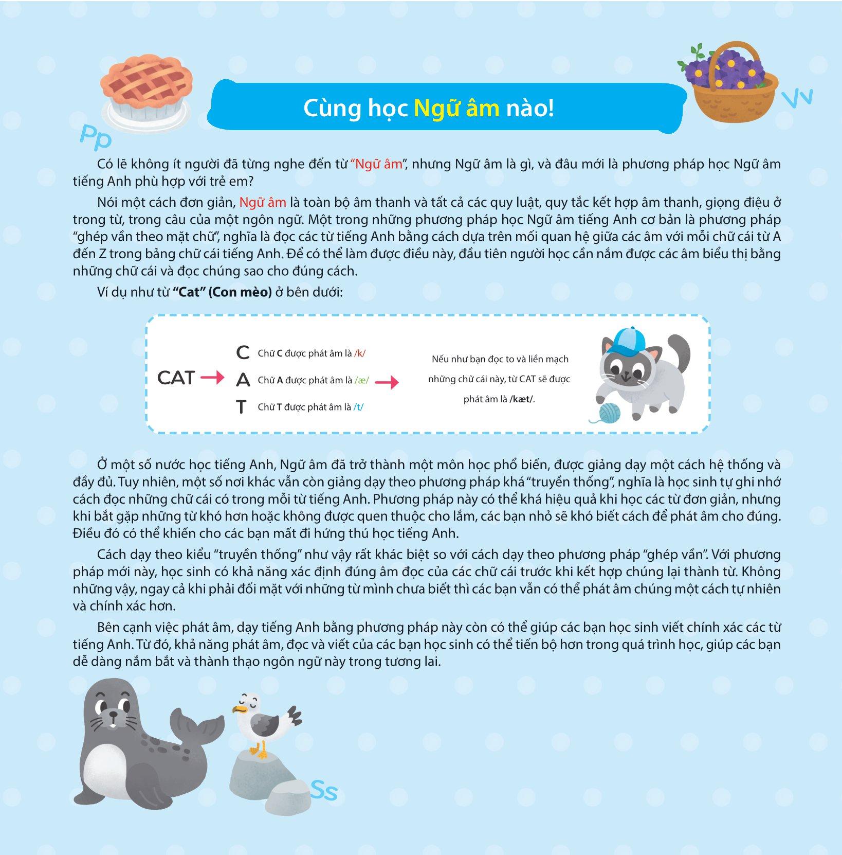 Với những ví dụ sinh động, dễ tiếp thu, kèm theo các bài thực hành nâng cao đầy tính thực tiễn và các audio dạy phát âm chuẩn bằng giọng Anh-Mỹ bản xứ, bộ sách sẽ cung cấp cho các em những kiến thức cần thiết để học ngữ âm tiếng Anh. Đúng như tên gọi, bộ sách được chia thành ba cấp độ từ cơ bản đến phức tạp, hướng dẫn các em rèn luyện từng bước một để nắm chắc các âm trong tiếng Anh. Ngoài ra, bộ sách còn lồng ghép những bài hát vui nhộn và những câu chuyện ngắn được minh họa đẹp mắt, hứa hẹn sẽ giúp cho việc học tập của các em thêm phần thú vị và hiệu quả.